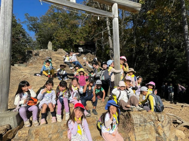 野山遊び、一緒に帰ろうがありました。野山遊びでは栗とクヌギの木を伐採し、茹で栗もいただきました。力を合わせてロープを引っ張り、大きな木がメキメキと音を立てながら倒れると、子ども達から「やったー!」と歓声が上がりました。一緒に帰ろうでは、先生やお友達と会話やゲームをしたり公園に寄ったりしながら、家までの道のりを楽しみました。